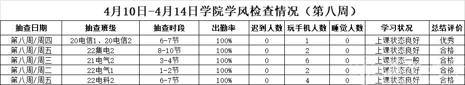 表1 2023.4.10-2023.4.14学校及学院学风检查情况