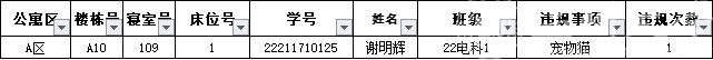 根据学校学生公寓安全“四级联查”工作机制要求,学工部、研工部、后勤管理处、保卫处、资产公司联合于5月23日对学生公寓区进行安全情况大检查。永利官网有1名同学出现公寓违规情况: