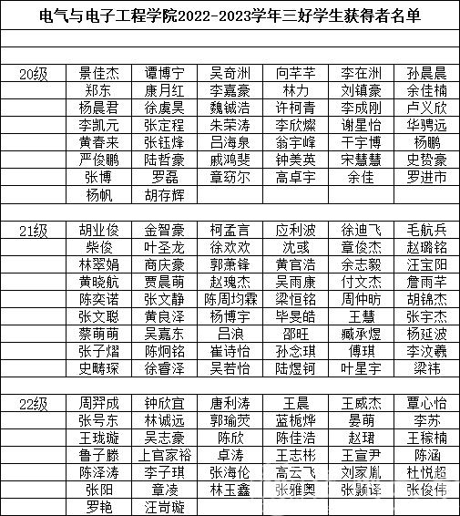 根据《yl7703永利官网奖学金实施办法》、《yl7703永利官网学生综合素质考评实施办法》、《yl7703永利官网三好学生评选办法》进行2020级、2021级、2022级学生2022-2023学年奖学金以及三好学生评选。经学生申请确认、学院评选,共评选出景佳杰等297名同学获得综合奖学金,张淞等25人获得单项奖学金,景佳杰等136名同学获“三好学生”称号。现将名单予以公示,请班级以及个人认真核对。