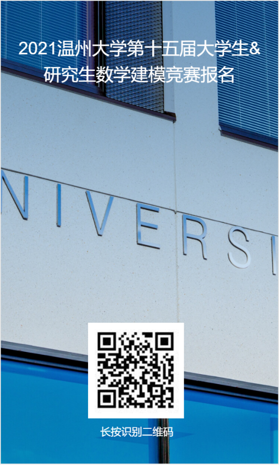 本次竞赛采用在线报名方式,各参赛队填写报名表(链接见页底或请扫文末二维码)。主题:2021数模竞赛本科组 or 2021数模竞赛研究生组;截止时间2021年5月3日