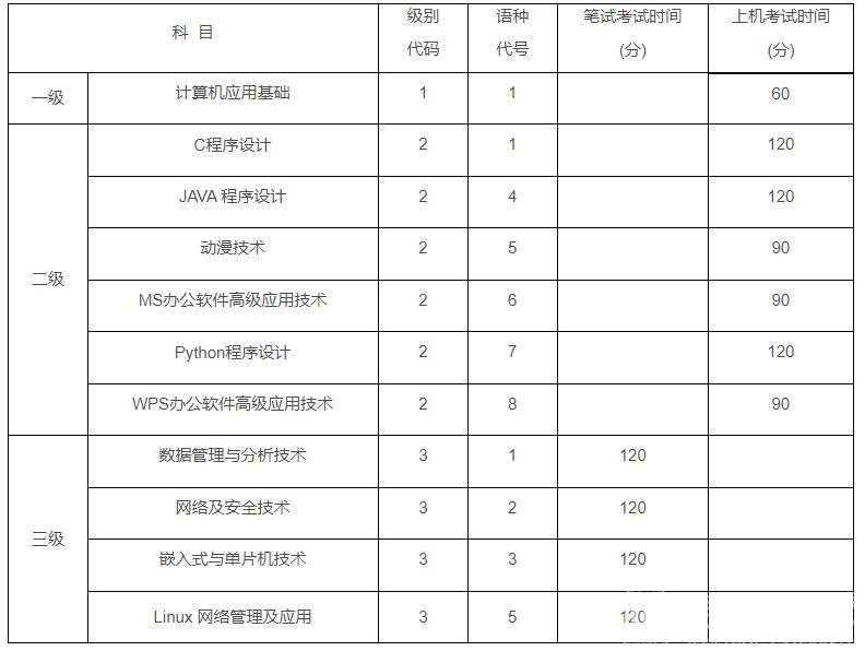 (六)三级,实行笔试,时间为120分钟。共有数据管理与分析技术、网络及安全技术、嵌入式与单片机技术、Linux网络管理及应用四个科目。